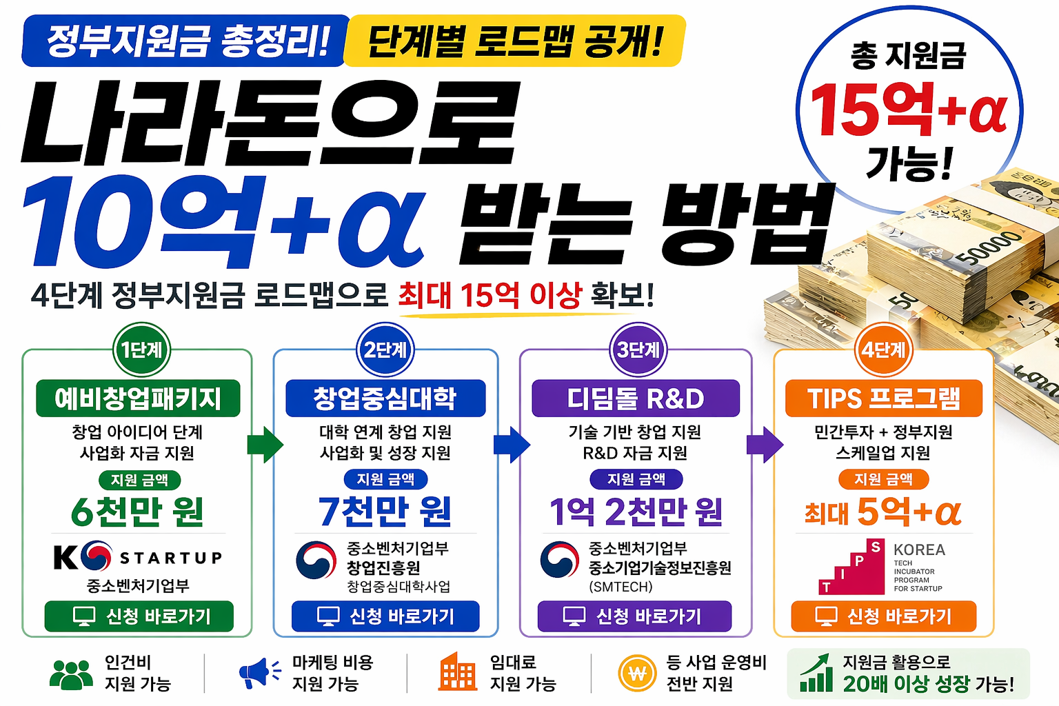 즉, 사업 운영 자체를 지원금으로 돌릴 수 있는 구조입니다.